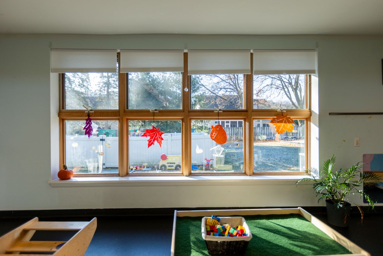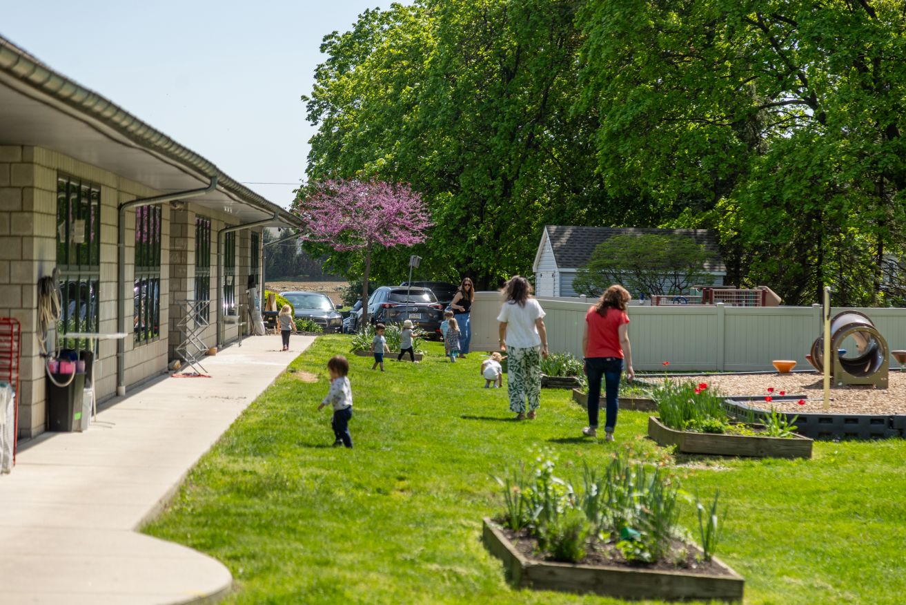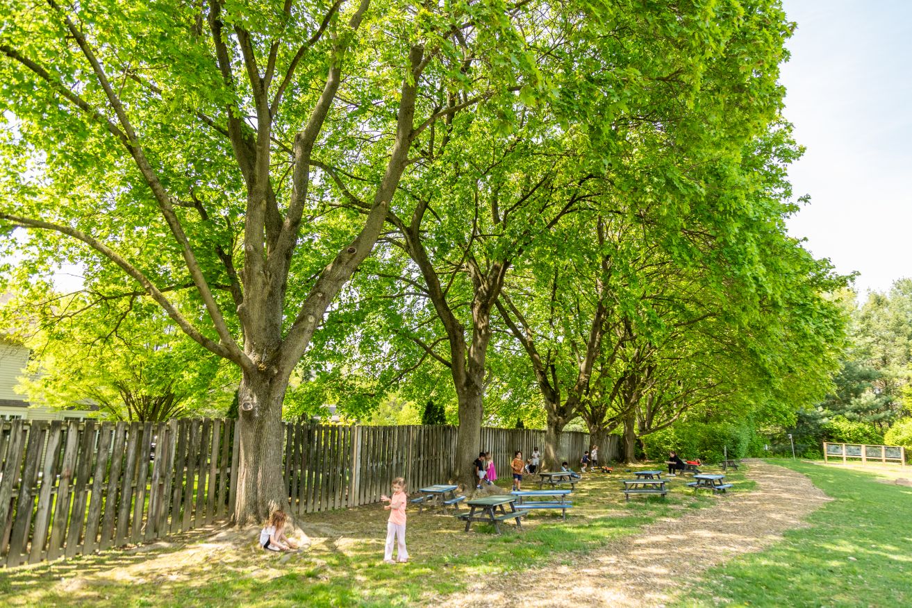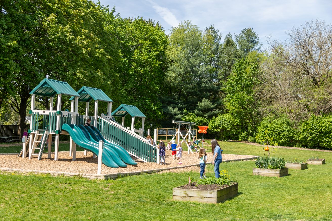 Our 10-acre nature-inspired wooded property includes a variety of outdoor spaces such as walking trails, shaded play spaces, art easels, classroom gardens, and an open meadow for exploring. We value open exploration, playful movement, and nature inspired observations – our outdoor space allows us to do all of this and more!