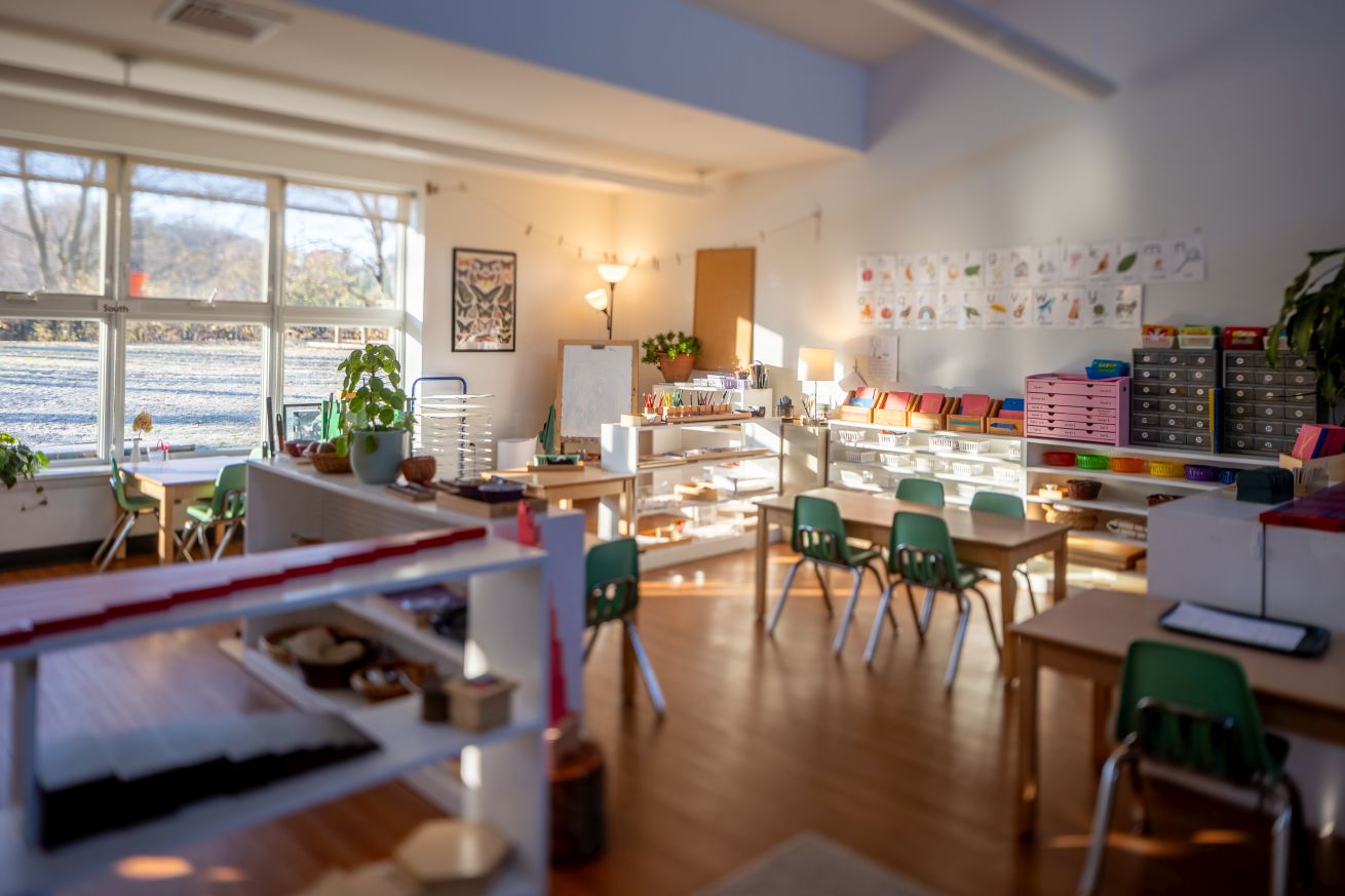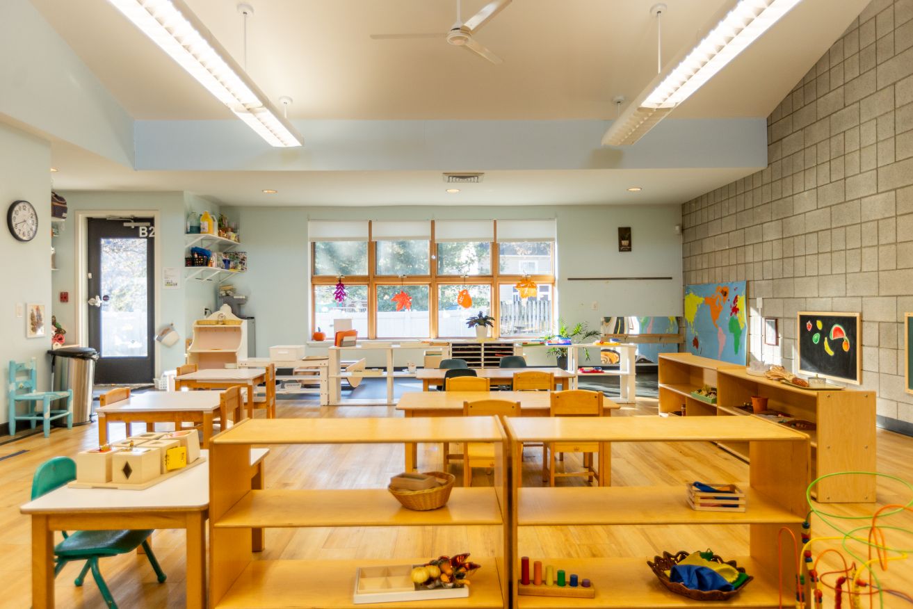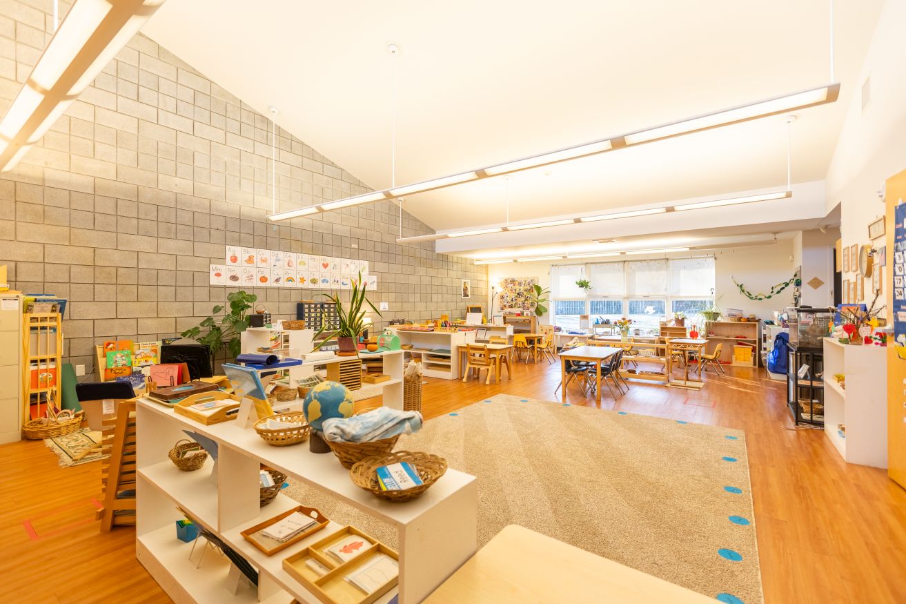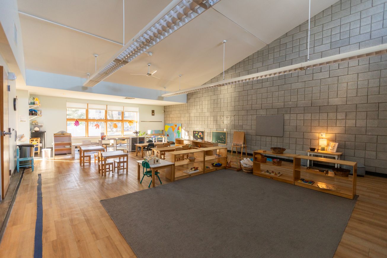 We have operated our programs in facilities built specifically for Montessori education since 1999. Our school welcomes you into a beautiful entryway bridging two classroom wings. More recently, we added a large multipurpose/gym space for inclement weather play, physical education classes, drama productions, and other school events. Bright natural light, peaceful and natural decor, indoor plants and classroom pets offer a sense of beauty, reverence, and welcome to everyone present.