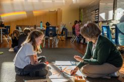 Upper Elementary students, ages 9-12, dig deeper into their academic work and continue to develop a strong foundation of academic skills, positive peer connections, and problem solving in a group setting that emphasizes compassion and an appreciation for difference. Students embark on collaborative learning projects with their peers, practice research techniques, and continue to organize and manage their work in a guided, supportive environment. Leadership opportunities are embedded in the Upper El experience through student-led initiatives and connections with the broader world continue with cultural studies, special presentations, and field trips.