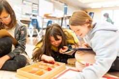 Lower elementary is a place where individualized learning guides children, ages 6-9, towards greater autonomy and responsibility. A self-paced, hands-on curriculum ignites a love of learning, builds foundational academic skills and encompasses a holistic approach to growth & development. Students grow their curiosities through cultural studies with a “big picture” or cosmic view of the world, hands-on explorations, and form positive peer relationships while cultivating self-awareness, empathy towards others, and problem-solving skills. Our curriculum includes learning experiences beyond the classroom such as field trips, special presentations, and cultural events throughout the year. Learning is personalized, self-paced, and joyful!