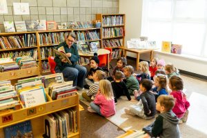 Our library is a curated collection of children’s literature that includes a wide variety of genres, supports an integrated curriculum, and provides a shared space to explore, research, and converse about our favorite books and stories. All students have weekly opportunities to visit the library and benefit from the expertise of our own librarian. Picture books are often a vehicle for a child's first experiences with art, culture, and the diversity of thoughts that makes us human. We aspire to build identity, empathy, community, appreciation for diversity, and a serendipitous building of language skills. Most of all, our library seeks to support literacy in all its stages and strives to instill a love of reading in all our students.