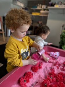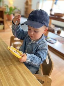 Our toddler program is truly a place where children feel the warmth of a “family-like” environment designed specifically to support their success in this sensitive period for building independence, concentration, and language. There is a sense of purpose as children engage in real-life work in a peaceful, homelike environment guided by nurturing teachers. Food preparation, outdoor play, observation of the natural world, and language rich conversations provide an array of enriching sensorial experiences for your child in an environment that feels calm and supportive. A close partnership with families makes the toddler community a beautiful place for your child to spread their wings!